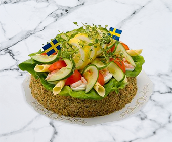 Vi är stolta över våra fantastiskt goda smörgåstårtor som är prydda med räkor, ost, gurka, tomat och citron.