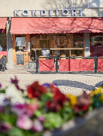 Stannar du på en kopp kaffe bjuder vi på sittplatser inne i konditoriet och ute på vår soliga uteservering vid Hagatorget. Vi startar tidigt på morgonen med trevliga frukosterbjudanden och resten av dagen erbjuder goda smörgåsar, varma toast, bakad potatis med härliga fyllningar, samt fräscha sallader och hembakade pajer. Förutom vår goda mat serverar vi även kylda drycker, samt öl och vin, då vi har fullständiga rättigheter. Vårt kaffe håller en extra hög kvalitet. Och självklart tar vi inget extra om du önskar påtår.